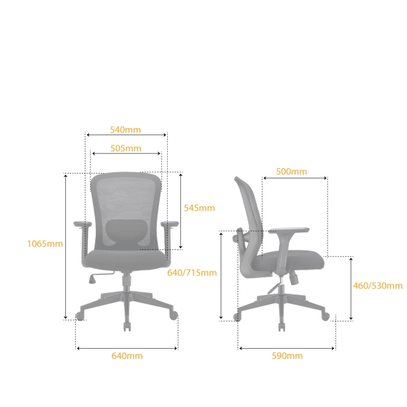 Product Information- Green Mesh Back & Seat- Black Polypropylene Legs & Arms- Class 3 Hydraulic Lift-up- Height-Adjustable Armrests- Molded Foam Seat- 150kg Max Load  Seat Firmness SizeL 635 x W 625 x H 1040 mmSeat...