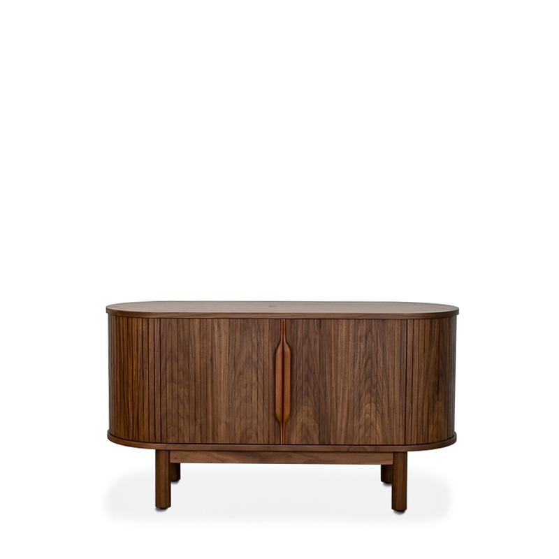 Color & Materials- Walnut High Pressure Laminate (HPL) w/ Black Melamine Carcass- With Push-open Hinge